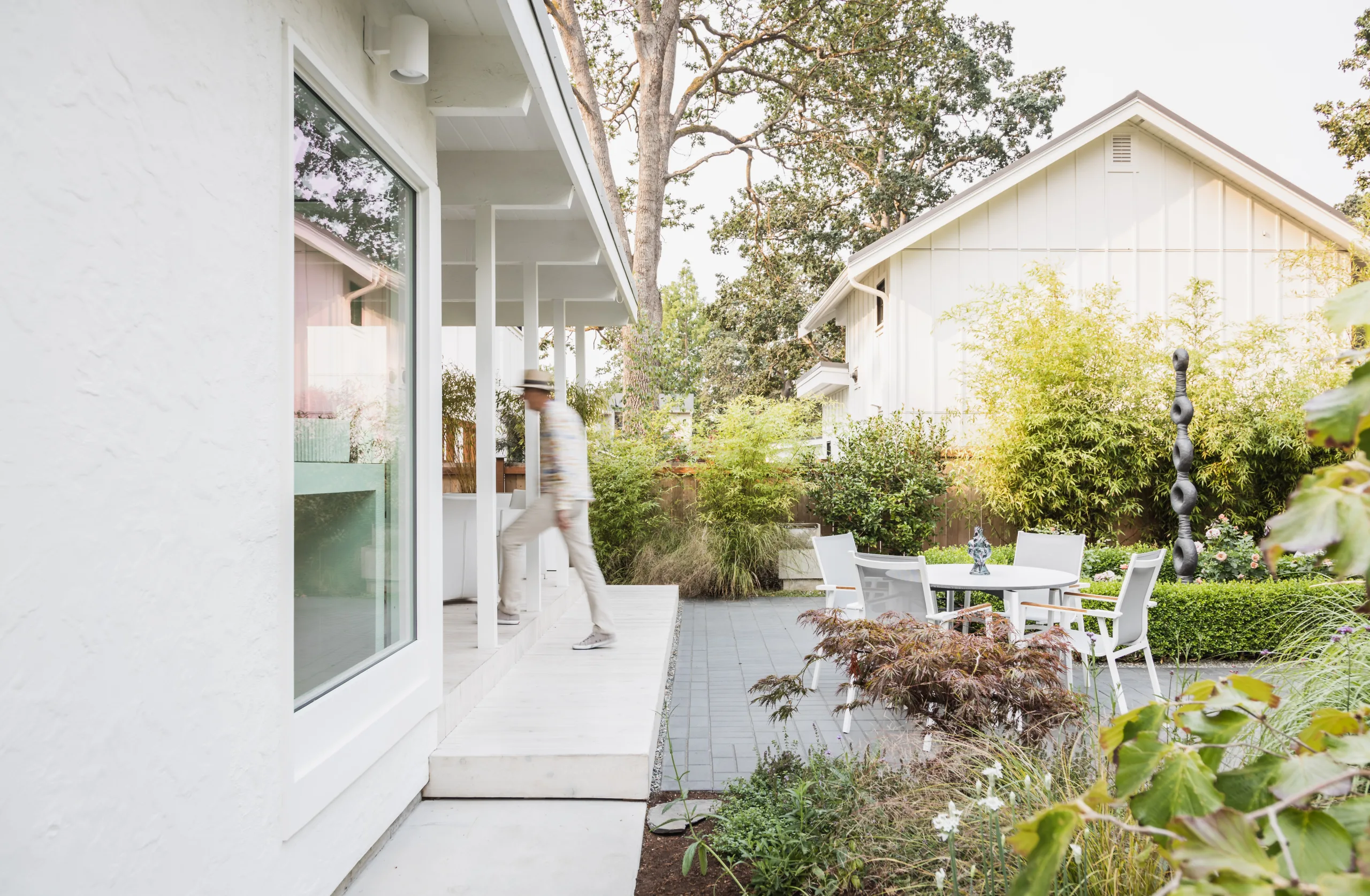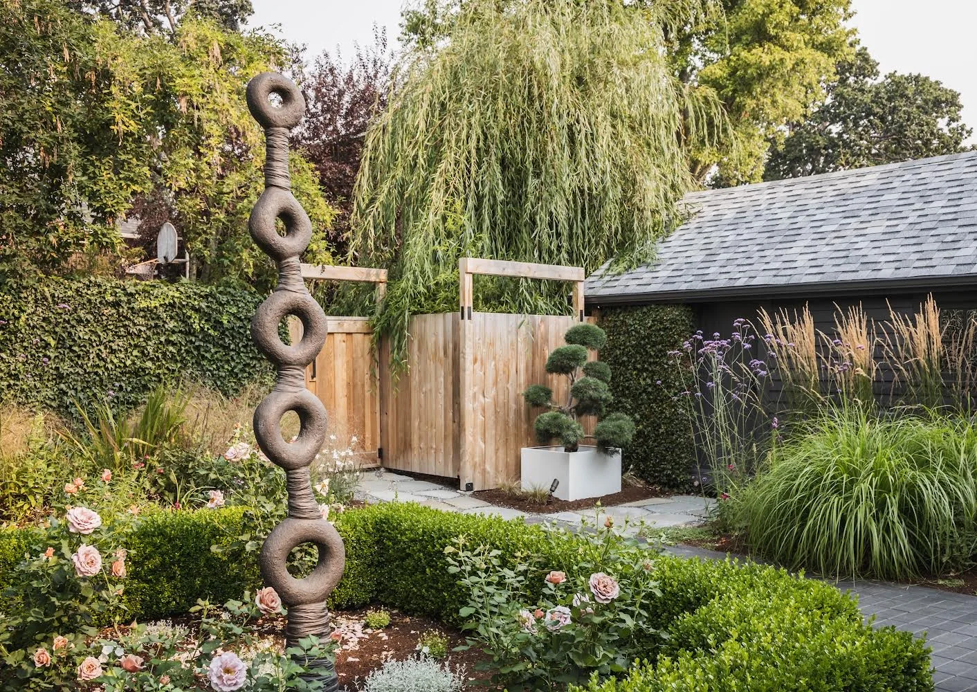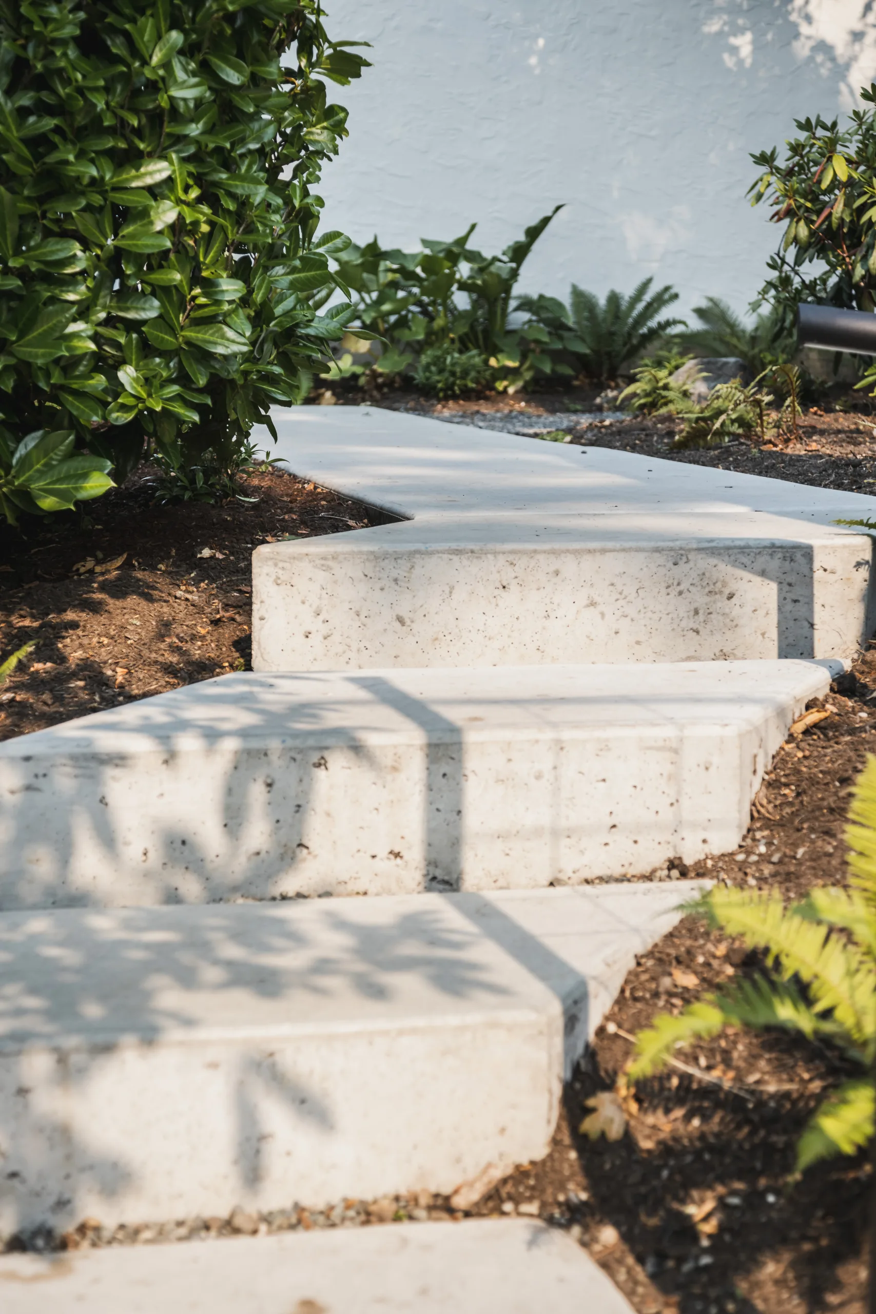 Tucked beneath the sheltering canopy of a Garry Oak, Cedar, and Willow, this thoughtfully layered landscape bridges a newly renovated modern rancher with its natural surroundings, creating a whimsical yet elegant flow from front to back. Native plantings, meandering concrete paths, and a mix of classical and contemporary garden elements come together to form an immersive, storybook experience. Framed by bold textures and unexpected focal points—including sculpture, custom planters, and a tranquil water feature—this garden evokes a sense of peace, creativity, and refined play.