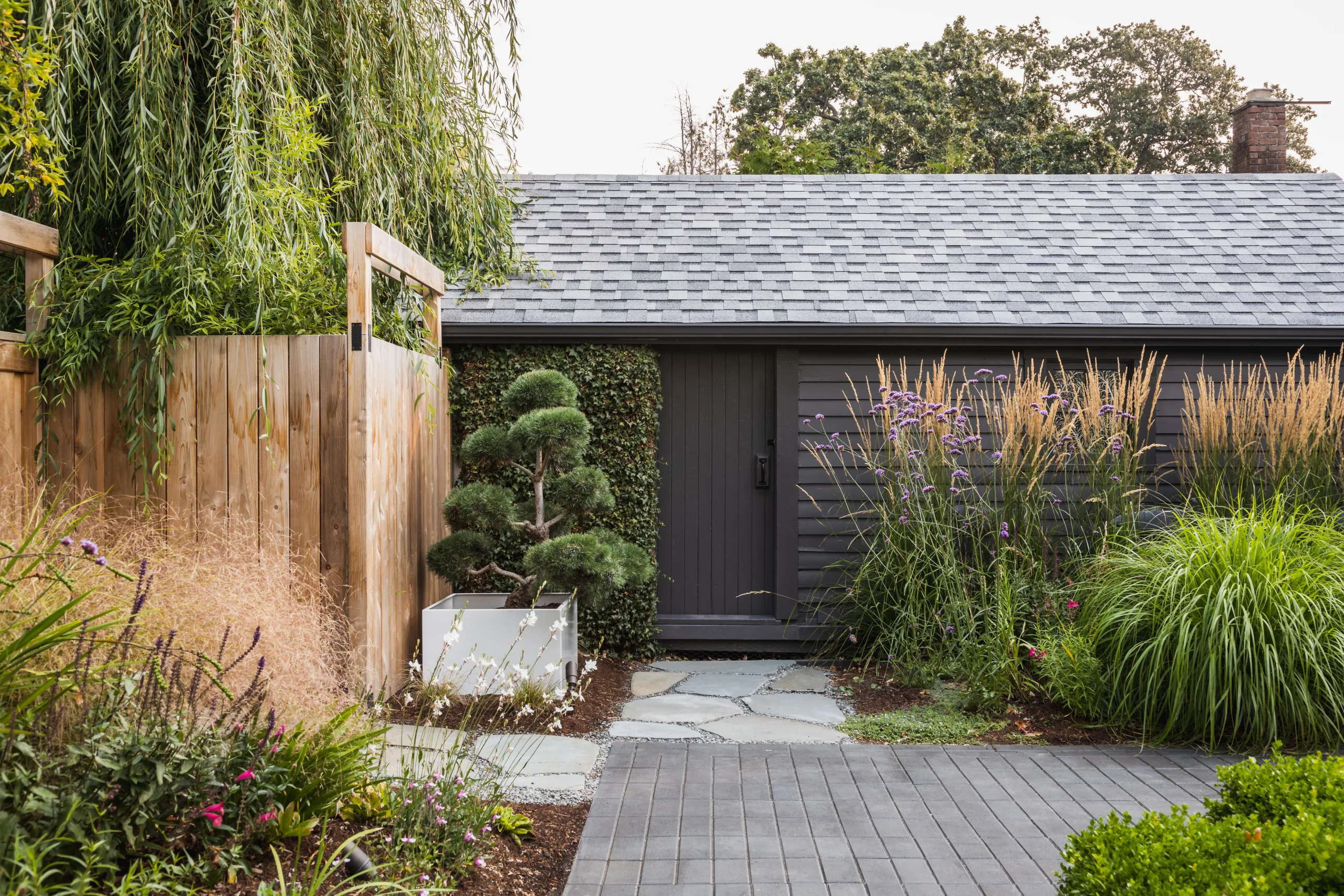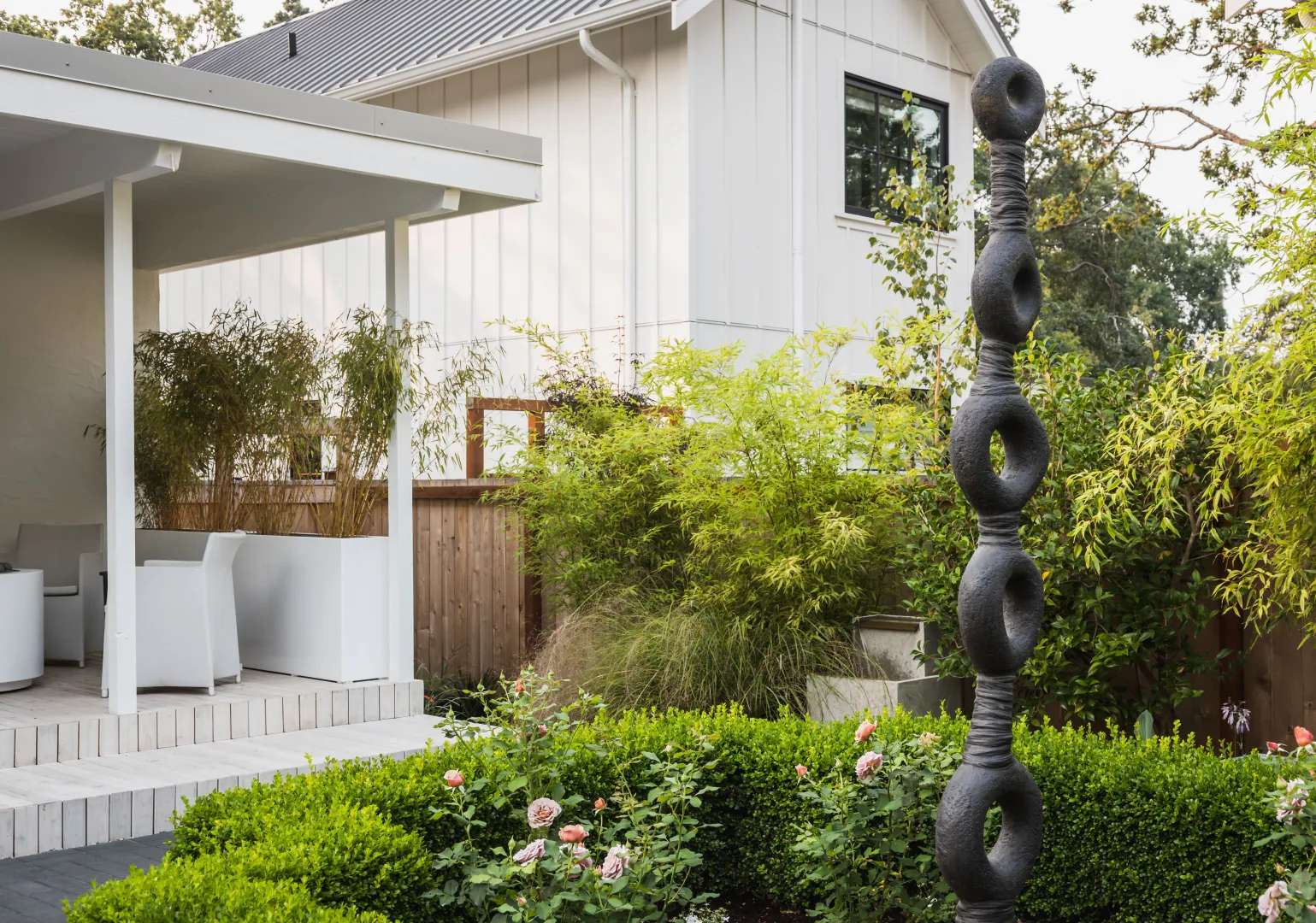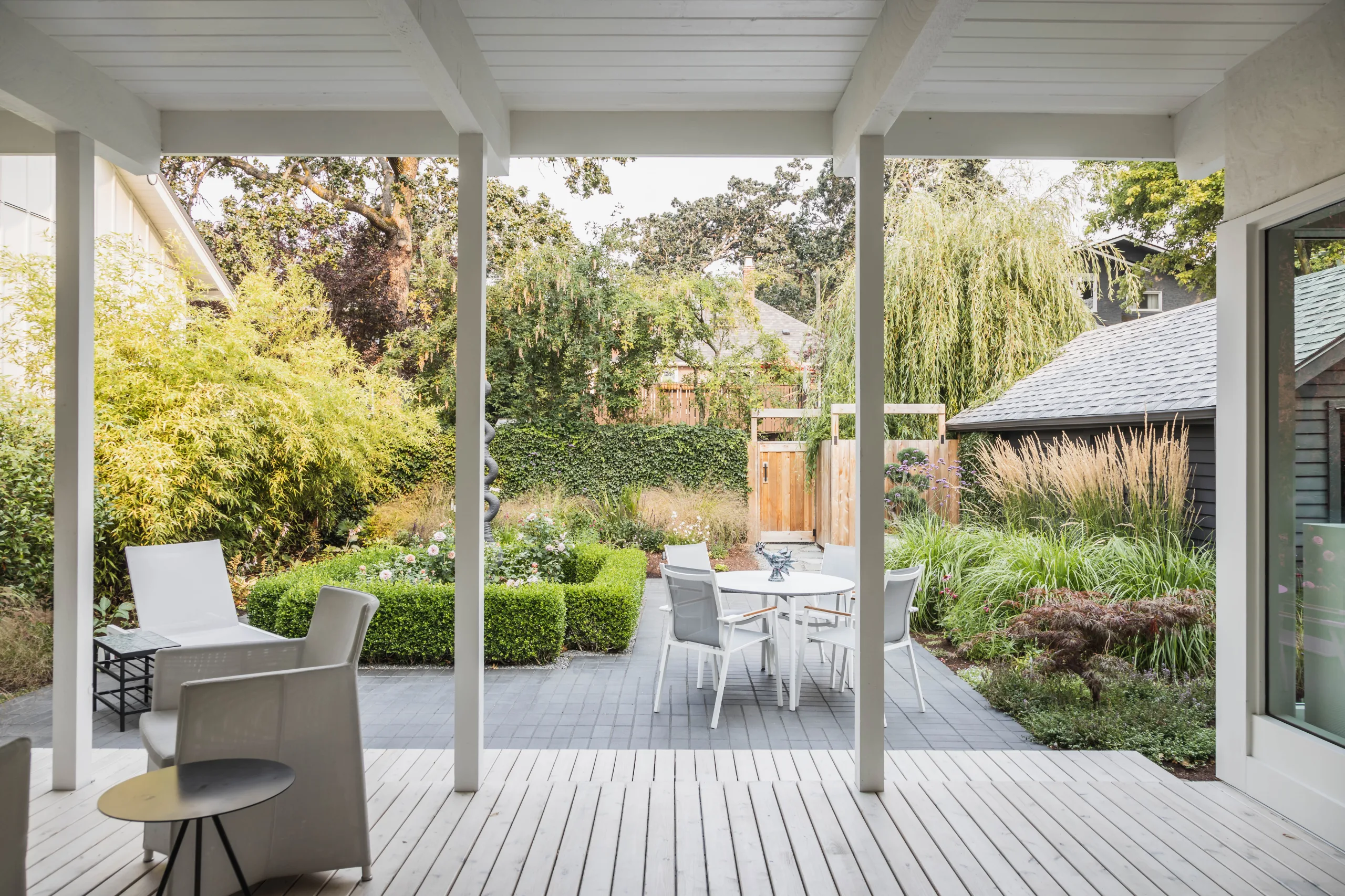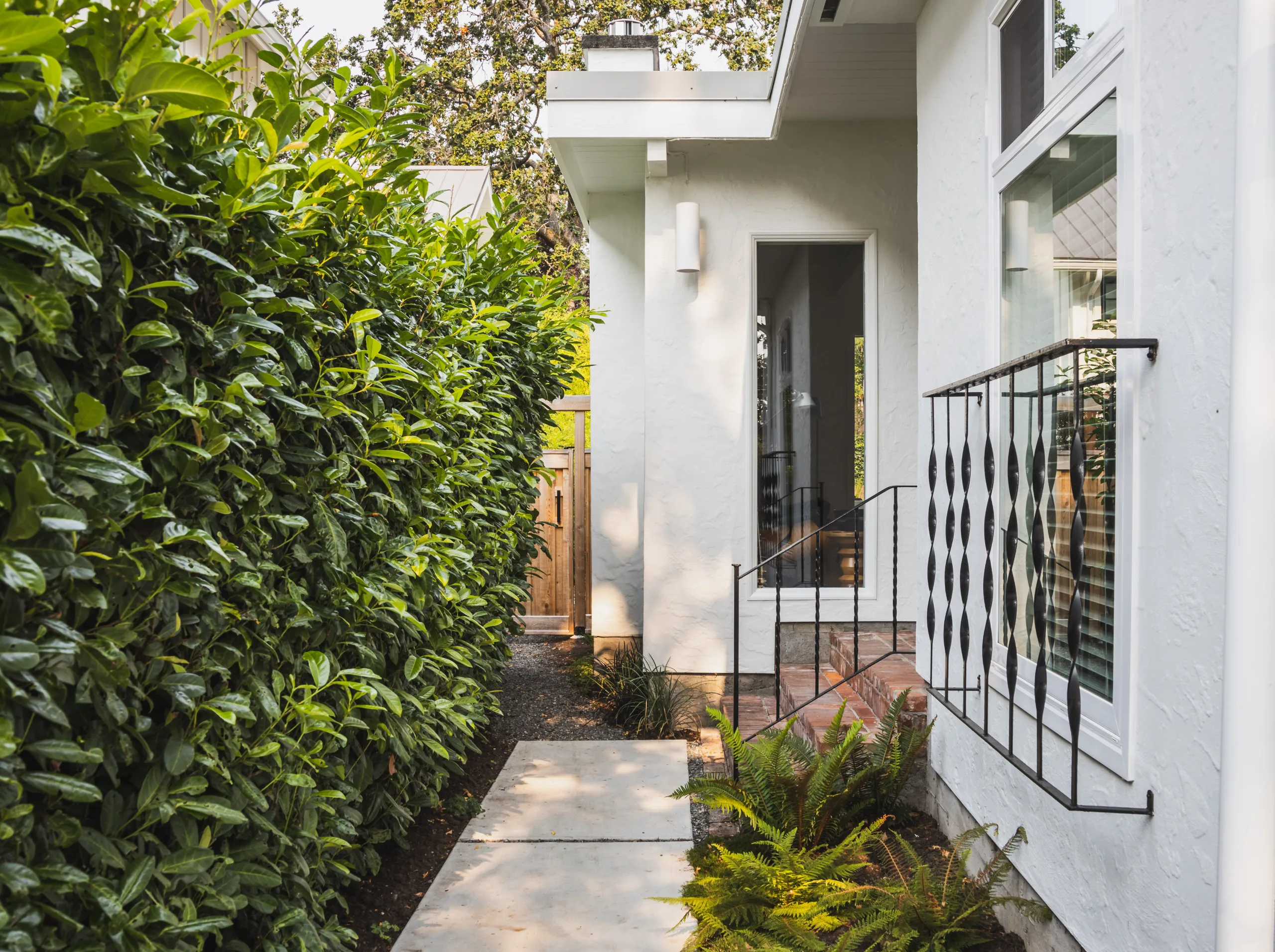 Tucked beneath the sheltering canopy of a Garry Oak, Cedar, and Willow, this thoughtfully layered landscape bridges a newly renovated modern rancher with its natural surroundings, creating a whimsical yet elegant flow from front to back. Native plantings, meandering concrete paths, and a mix of classical and contemporary garden elements come together to form an immersive, storybook experience. Framed by bold textures and unexpected focal points—including sculpture, custom planters, and a tranquil water feature—this garden evokes a sense of peace, creativity, and refined play.